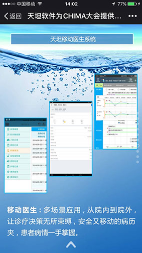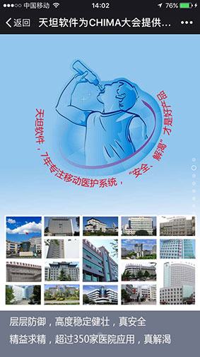 通過這樣一年一度高規(guī)格的國家級盛會,加強(qiáng)了移動醫(yī)療行業(yè)的交流與合作,推動了移動醫(yī)療產(chǎn)業(yè)健康可持續(xù)發(fā)展。同時激勵著天坦軟件要為移動醫(yī)療做出更大的貢獻(xiàn),正如與會專家對天坦軟件的評價一樣 “渴了就喝天坦特供水,“天然、健康、安全、解渴”的產(chǎn)品,才是好產(chǎn)品”。