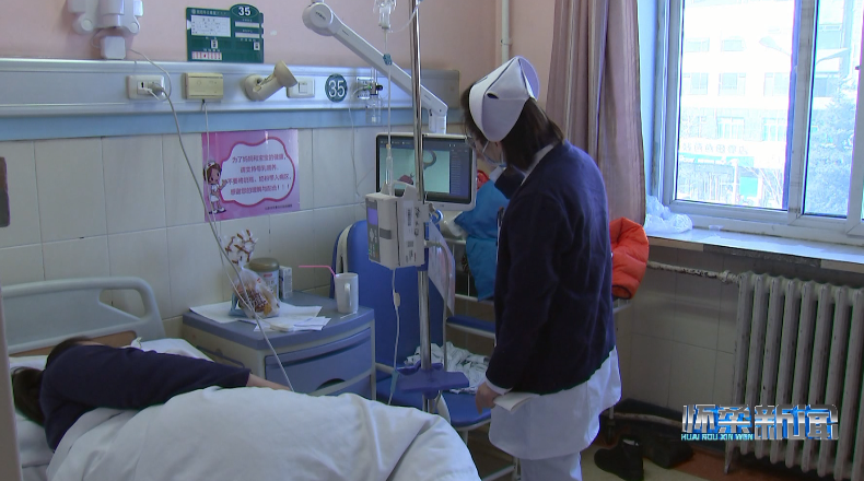 在兒科病房內(nèi),前來換藥的護士打開床旁照護系統(tǒng),為小患者挑選喜歡的動畫片,在確認患者身份后用手持PDA掃描患者腕帶上的二維碼,識別病例等信息并登記換藥情況。有了床旁照護系統(tǒng)的動畫轉(zhuǎn)移注意力,小患者不在緊張、害怕,整個換藥過程十分平穩(wěn)、迅速。