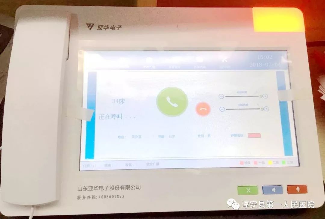 床頭分機(jī),待機(jī)界面可顯示患者的住院信息、護(hù)理信息和注意事項(xiàng)等,菜單界面可查詢上萬字的入院須知、醫(yī)囑信息、藥費(fèi)詳單和醫(yī)生簡介等內(nèi)容,采用4種顏色護(hù)理標(biāo)識燈警示護(hù)理級別、過敏、飲食等,支持增援呼叫,呼叫等待提醒。